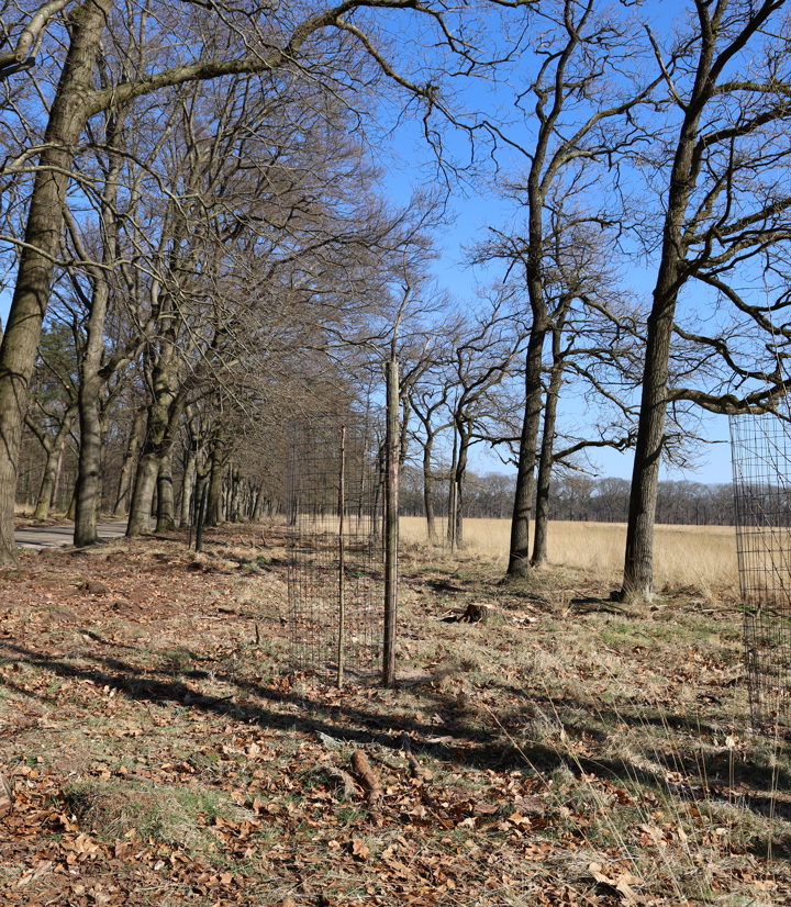 Die Stieleiche wird allerdings in begrenztem Umfang gepflanzt und geschützt. Die natürliche Verjüngung gelingt nur schwer, da das Wild junge Eichen gerne frisst. Um die Jungpflanzungen zu schützen, verwenden wir elektrische Zäune und Baumschutzhülsen.