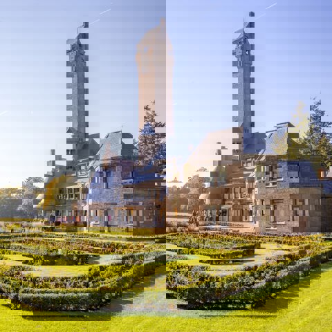 The distinctive tower on Jachthuis Sint Hubertus is atypical of English Country House style. It is, however, a defining feature in Berlage's buildings. The tower was added at the request of the Kröller-Müllers, who wanted to enjoy sweeping views of the surrounding countryside.