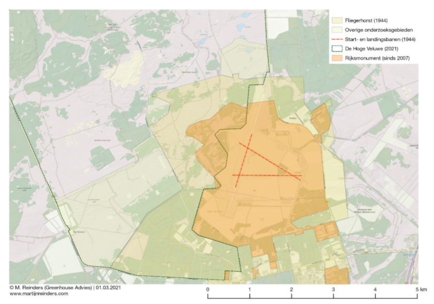 Ruim een derde deel (36%) van de uiteindelijke omvang van ‘Fliegerhorst Deelen’ valt binnen de huidige grenzen van het Park. Het betreft onder andere verschillende rolbanen met opstelplekken en hangars, een groot deel van het tracé van het spoorlijntje, munitiedepots en verschillende FLAK-stellingen. Vrijwilligers van het Park hebben zich afgelopen jaren steeds meer verdiept in de periode WOII binnen het Park. Voor het Park (beleid, beheer en bezoekersmanagement) is het steeds relevanter om exact te weten waar mogelijke (ondergrondse) relicten van het erfgoed zich bevinden. Met subsidie van provincie Gelderland heeft Greenhouse Advies deze zo goed mogelijk de locaties van voormalige gebouwen en structuren uit die periode in GIS (geografisch informatie systeem) gezet. Aan de hand van die informatie, zijn locaties in het makkelijker terug te vinden in het veld en ‘te lezen in het landschap’.