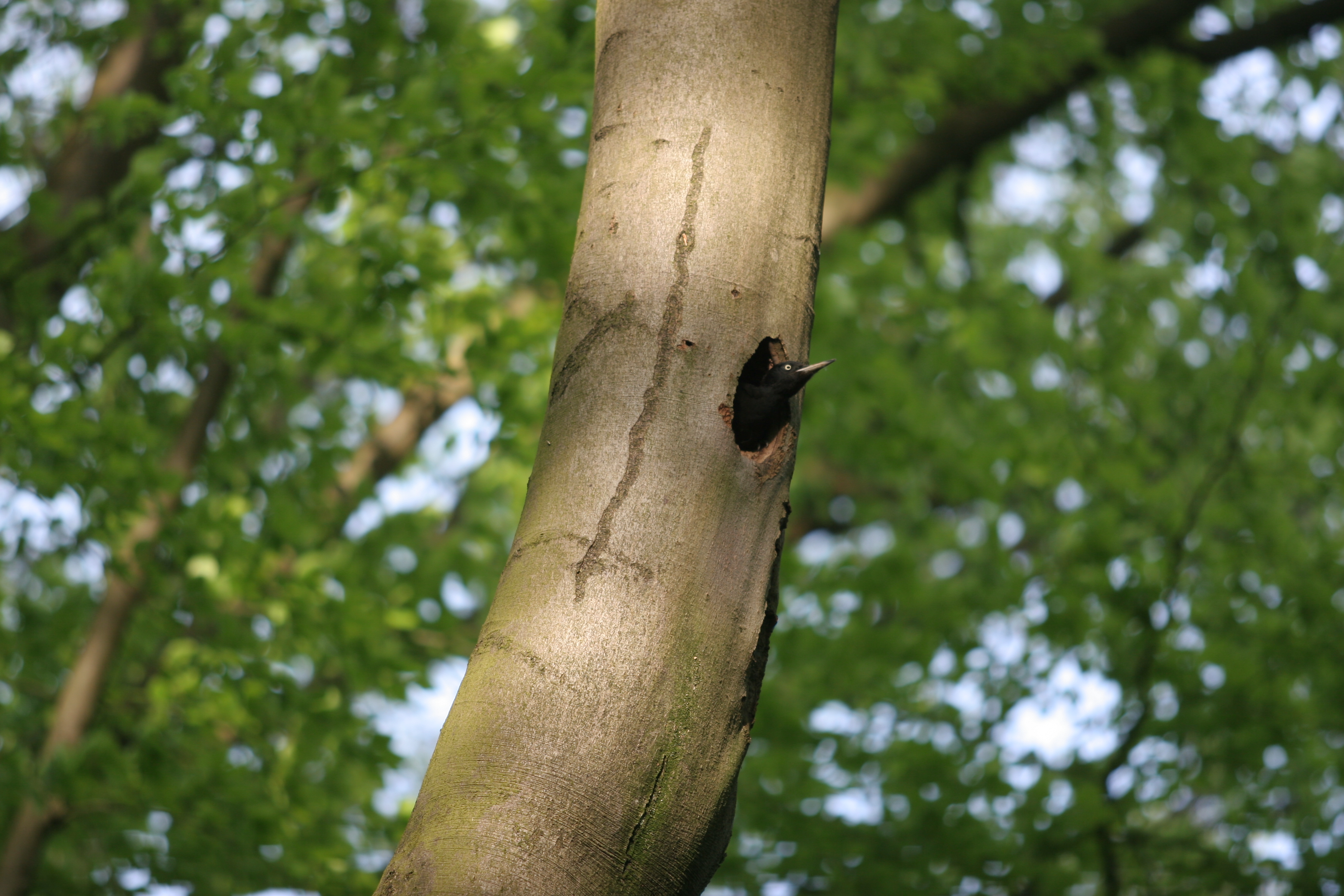 Zwarte spechten zijn schuw. Ze gaan ervandoor zodra ze mensen waarnemen. Ze proberen ongezien te blijven door aan de achterzijde van de boom te blijven. Loop je om de boom heen, dan draait de vogel mee, zodat hij steeds uit het zicht blijft.