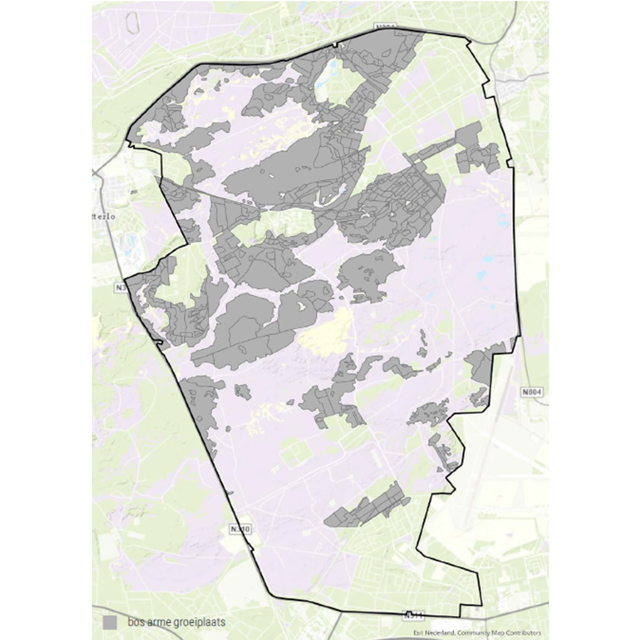 Bos op voedselarme bodem bestaat hoofdzakelijk uit grove den. Het aandeel loofbomen is ongeveer 20 procent. Een goede structuur is van groot belang binnen de bossen. Hierbij wordt gekeken naar zowel aanwezige struiklagen als verschillende boomlagen.
