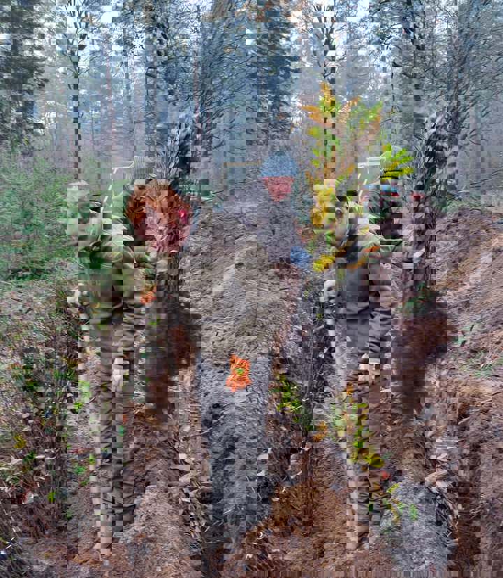 Bij het inboeten planten we dezelfde soorten bomen aan als we al eerder aangeplant hebben binnen deze rasters. Dat zijn de volgende soorten: boswilg, gewone esdoorn, wintereiken, hazelaars, tamme kastanje, ratelpopulier, veldesdoorn, elsbes en de zoete kers.