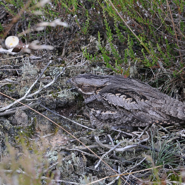De nachtzwaluw is, zoals de naam al zegt, alleen ‘s nachts actief. Zou je overdag naast een nachtzwaluw staan, dan is de kans erg klein dat je hem ook daadwerkelijk ziet. De vogel heeft een magnifiek gecamoufleerd verenkleed dat hem op de grond nagenoeg onzichtbaar maakt. Daarom moet bij het tellen worden afgegaan op het geluid dat de vogels maken.