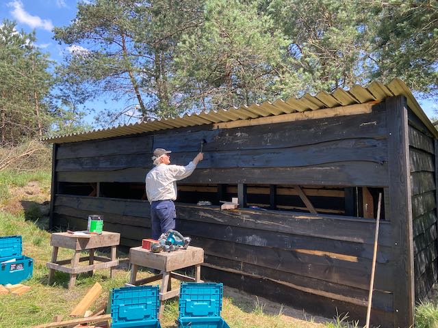 Gerard is coördinator van de Bouwgroep, een van de elf werkgroepen van de Vereniging van Vrijwilligers van De Hoge Veluwe. Eigenlijk is ‘groep’ een groot woord, want ze zijn met z’n drieën: Gerard, Bertus en Frank. En die omvang bevalt ze prima. ‘We zijn een hecht, gezellig team’, vertelt Gerard. ‘Bovendien werk ik graag zelf mee. Als de groep groter zou zijn, zou ik vooral bezig zijn met coördineren. Bij grotere klussen kunnen er trouwens wel meer vrijwilligers worden ingezet.’