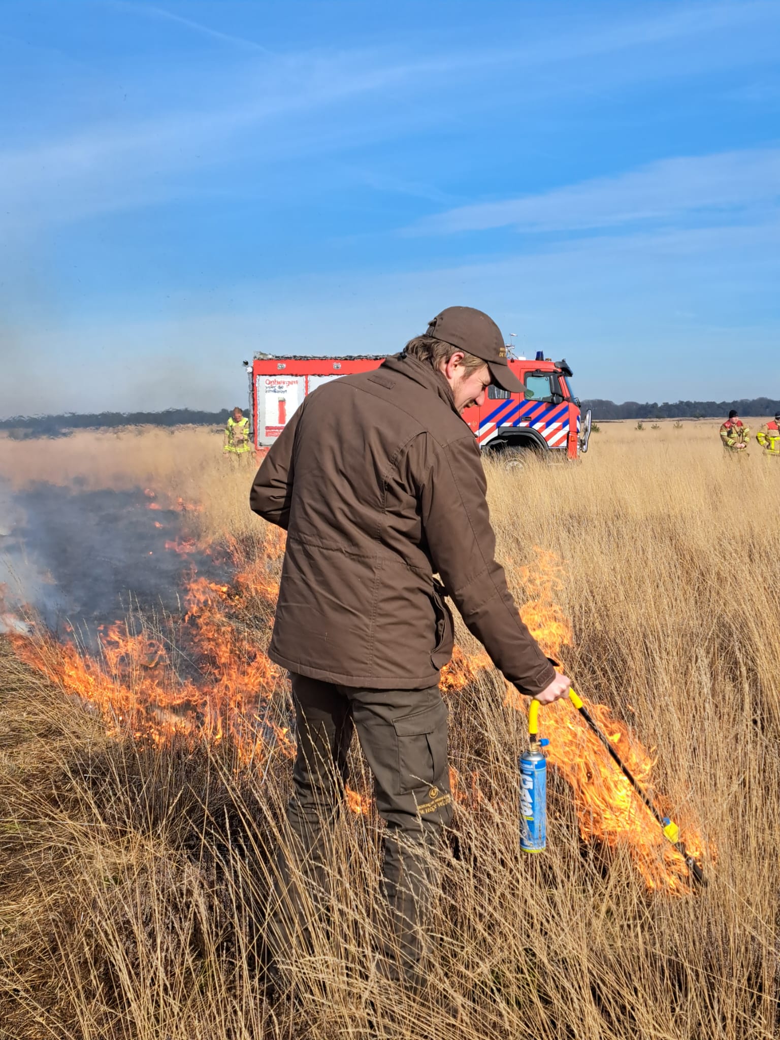 Voordat we kunnen gaan branden treffen we voorbereidingen. We leggen contact met de brandweer om een ontheffing te krijgen voor het branden. De stukken die worden gebrand beslaan ongeveer een halve hectare. Hier maaien we een strook omheen zodat de brand zich niet uitbreidt buiten de stukken die we willen branden. Het brandbare gedeelte branden we tegen de wind in. Hierdoor brandt de begroeiing langzaam en goed af. Dit is ook belangrijk voor de veiligheid omdat op die manier het vuur beter gecontroleerd kan worden. Vervolgens wordt gecontroleerd of alles goed uitgebrand is. Het branden gebeurt altijd in samenwerking met de brandweer, die met materieel en manschappen aanwezig is naast onze eigen medewerkers.