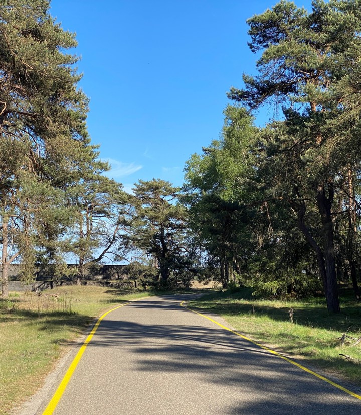 Er blijven voldoende parkeerplaatsen over langs de weg. Hier staat geen gele streep.