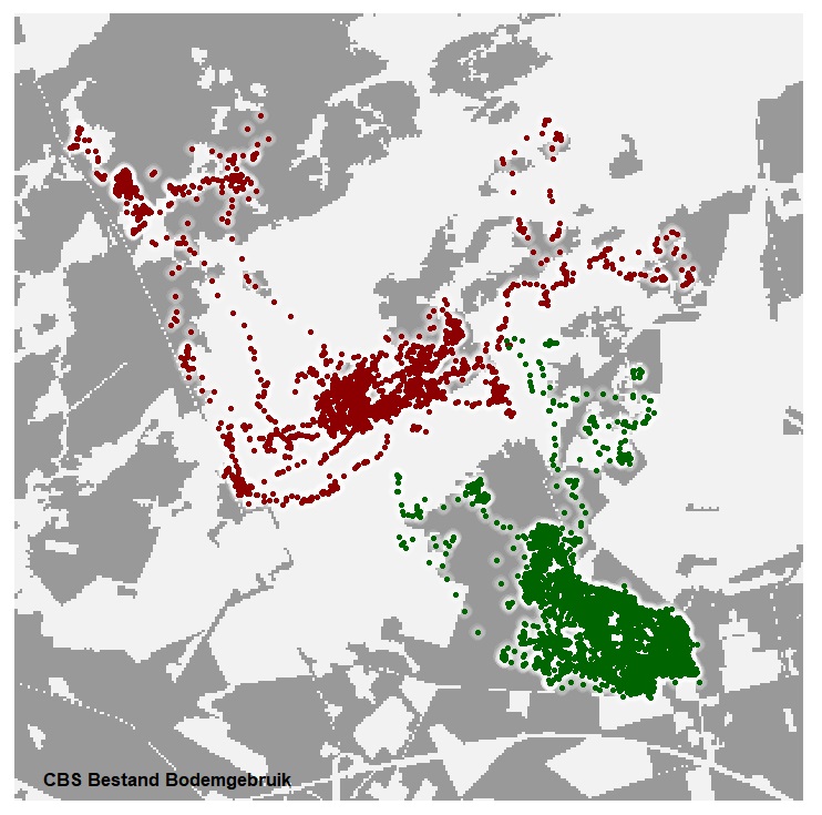 WUR-onderzoeker Frank van Langevelde: “Na het zenderen in Het Nationale Park De Hoge Veluwe vertrok het roofdier vrijwel direct. De wolf maakte vervolgens een tocht door Overijssel en Drenthe en keerde daarna terug naar de Veluwe. Van eind oktober tot begin december hield de wolf zich vooral op in de Zuidoost-Veluwe (Veluwezoom) en het Kroondomein Het Loo.”