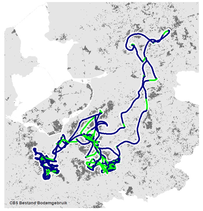 Van Langevelde: “De gezenderde wolf laat zien hoe goed wolven zich kunnen bewegen door het Nederlandse landschap. Het roofdier zwom de IJssel over (zowel heen als terug). Daarnaast stak de wolf onder meer ook meerdere snelwegen over, altijd ’s nachts.”