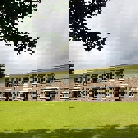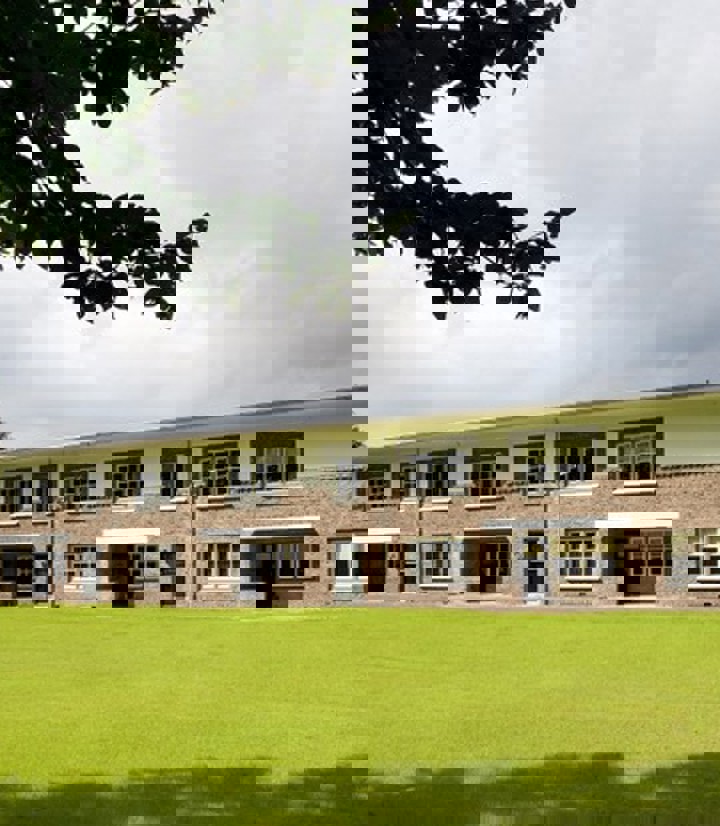 Het wachthuisje buiten was bedoeld voor treinreizigers, maar de trein is nooit aangekomen. Kijk je vanaf het wachthuisje naar het gebouw dan herken je u ook een soort binnenplaats, zoals bij het Jachthuis.