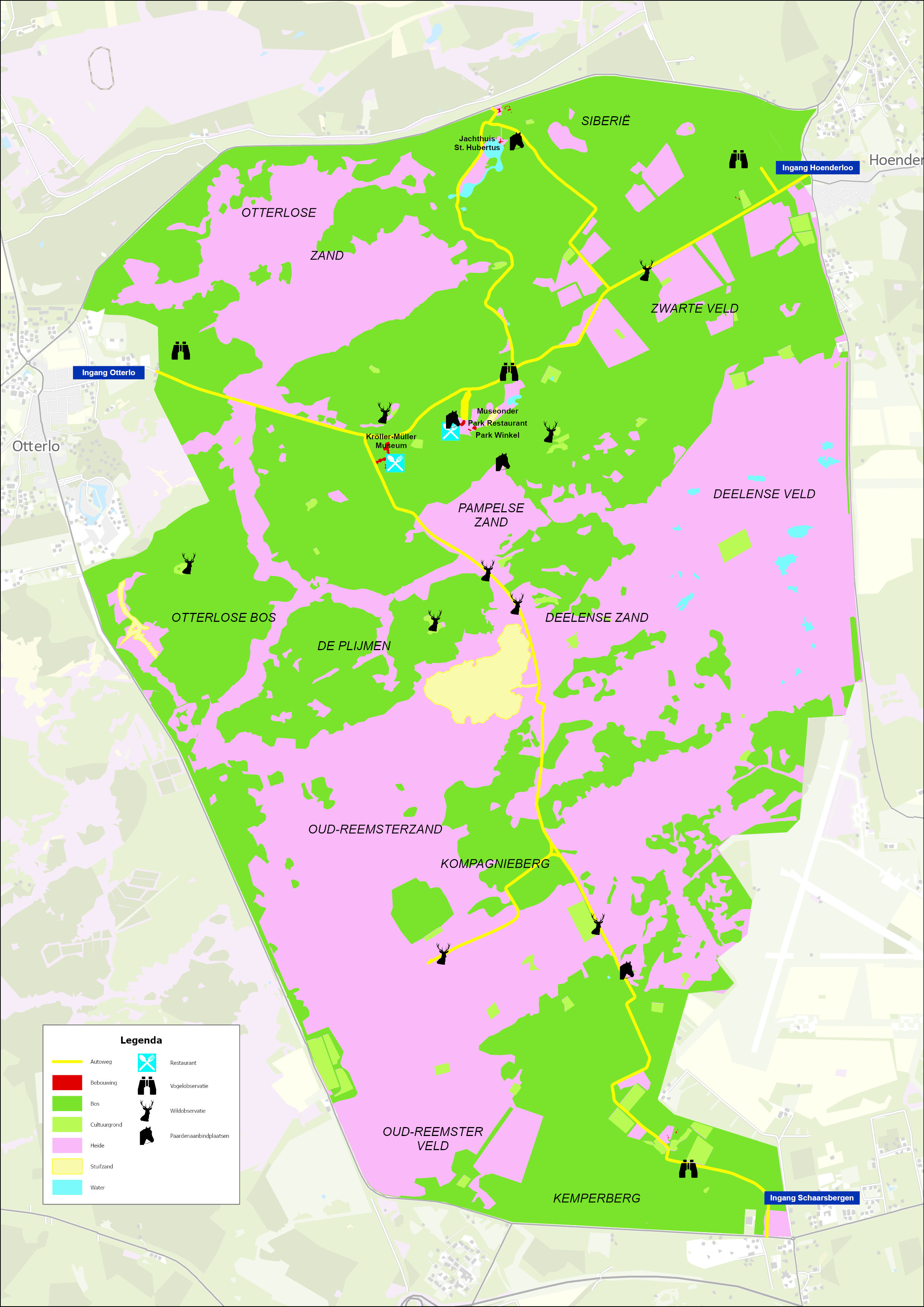 Bij de ingangen, het Museonder en de Parkwinkel is er een gedetailleerde plattegrond met wegen en wandel-, fiets- en ruiterpaden te koop voor € 2,00.