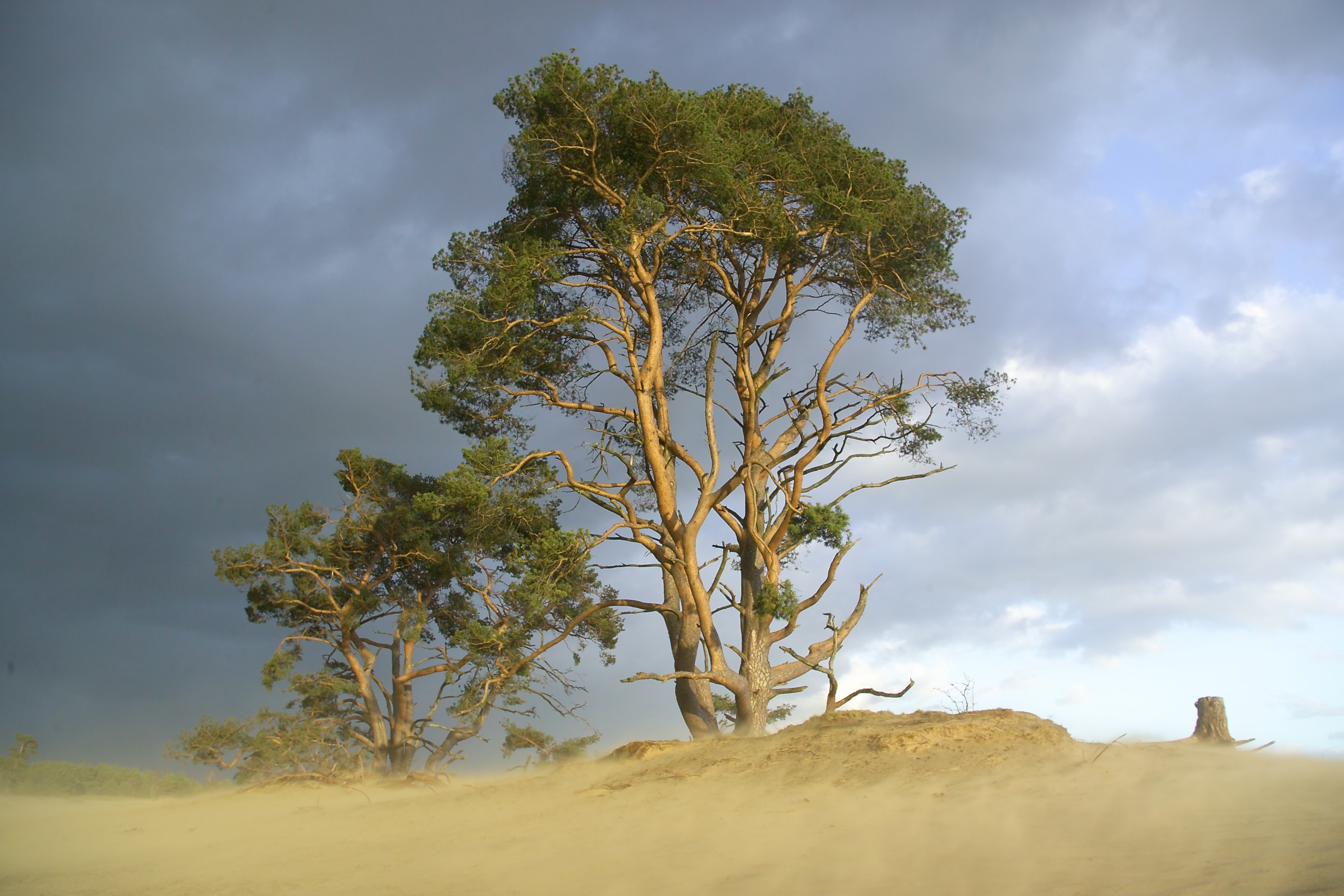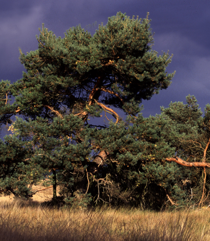 Een vliegden is eigenlijk een gewone grove den die is gegroeid waar de wind toevallig het zaadje liet vallen. Doordat dit op de stuifzandvlakte op open terrein is, groeit de vliegden vooral in de breedte en minder in de hoogte. Zo krijgt hij een heel andere vorm.