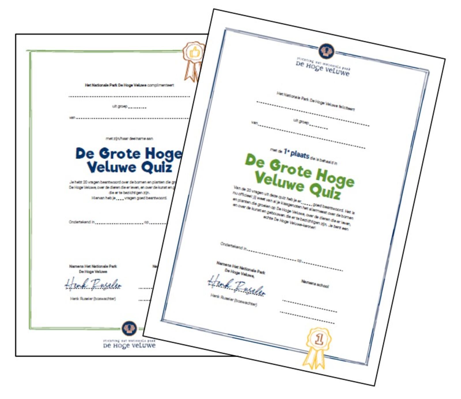 Bij de quiz horen antwoordformulieren die als pdf te downloaden zijn. Ook de diploma’s zijn beschikbaar als pdf.