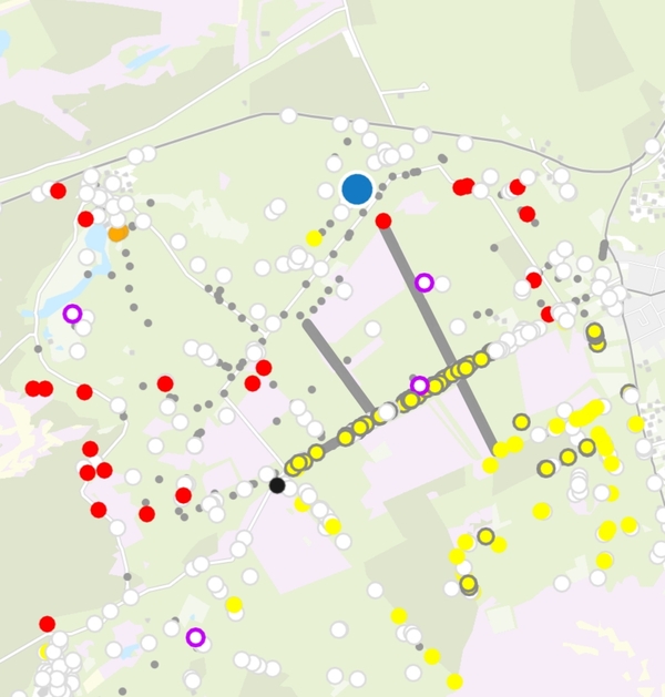Simpel gezegd wordt er bij een VTA controle gekeken of bomen gebreken hebben. Constateren medewerkers bijvoorbeeld zwamvorming, veel dood hout of zien ze breukgevoeligheid bij een boom? Dan wordt deze beoordeeld als attentieboom of risicoboom. Als u goed kijkt, kunt u in het Park attentie- of risicobomen herkennen. Een attentieboom wordt gemarkeerd met een gele stip, een risicoboom krijgt een rood kruis. Deze bomen worden geregistreerd in het Geografische InformatieSysteem (GIS), zodat we precies weten waar deze bomen staan.
