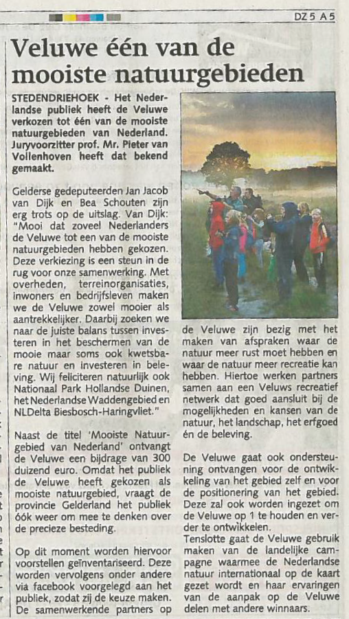 - Publicatie in Stedendriehoek - "Veluwe één van de mooiste natuurgebieden" d.d. 9 november 2016