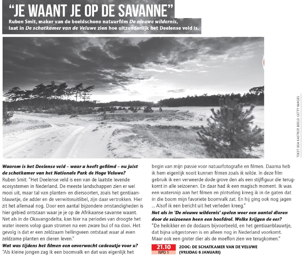 - Publicatie in Noordhollands Dagblad e.d. - "Wildsafari op de Veluwe" d.d. 3 december 2016